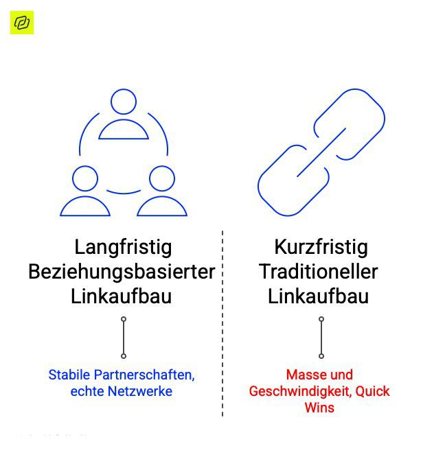 Um den vollen Wert von “beziehungsbasiertem” Linkaufbau zu verstehen, lohnt sich der direkte Vergleich mit herkömmlichen Methoden. Wer heute nachhaltig Backlinks aufbauen möchte, muss den Unterschied verstehen:
